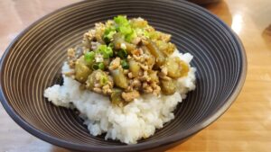 佐土原茄子🍆本来のふぁとろ感に秋茄子🍆特有の甘味があり酷のある甘辛味噌と豚ひき肉の相性が最高で豆板醤とネギ多めなので毎度、お馴染みのビール🍺とのゴールデンコンビ感が凄い!!